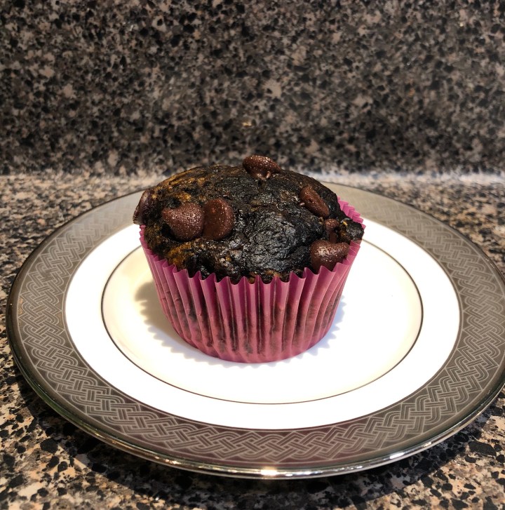 Scope into the lined muffin tin, filling about halfway. Sprinkle the remaining chocolate chips on top. Bake for 25 minutes or until a toothpick comes out clean. Cool and eat.